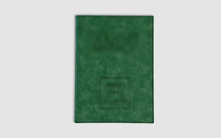 こちらのメニューブックは、新作の合皮を使用したメニューになります。本革と違い、多種多様な絵柄表現の出来る合皮は、たくさんのお客様に選ばれています。 表紙に大きく空押し(色の無い箔押し)を施していますが、版を押す際の熱圧で … 続きを読む 2ページから4ページへ<br>ご希望に添った<br>メニューブック作りを