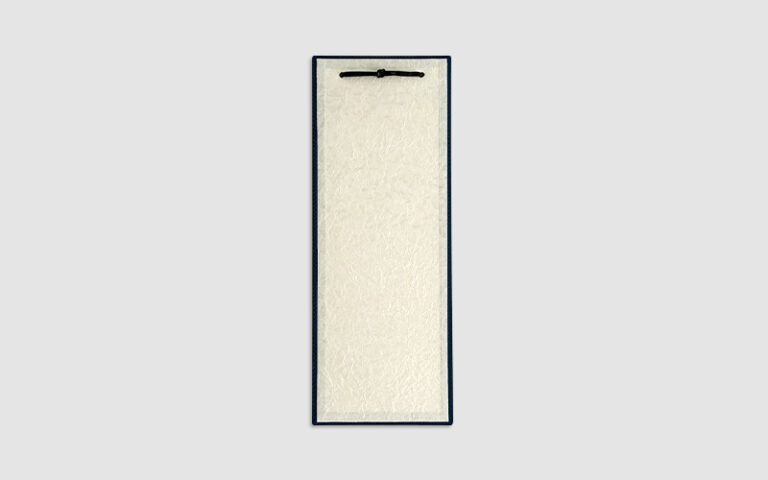 和を感じさせる布生地と和紙を組み合わせた、高級感あるメニューボードになります。色は8種類から選択でき、店舗の雰囲気に合わせて制作できます。見返し側で使用している和紙は、あえて少し「くしゃくしゃ」なものを選択しています。印 … 続きを読む 和柄がモチーフの<br>メニューボード