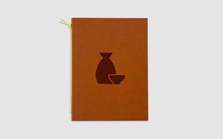 こちらは、日本酒を売りにした居酒屋さんのメニューブックとなっております。表紙のおちょこととっくりが目を惹くデザインで、とってもおしゃれです。合皮の色と紐の色を合わせることで、統一感のある仕上がりになっています。中のビニー … 続きを読む 空押しが目を惹く<br>居酒屋のメニューブック